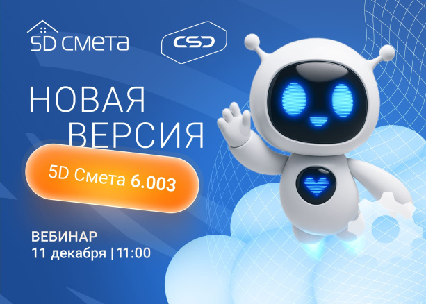 11 декабря | 11:00Мы рады пригласить вас на вебинар, посвящённый новым возможностям программы 5D Смета — версии 6.003!